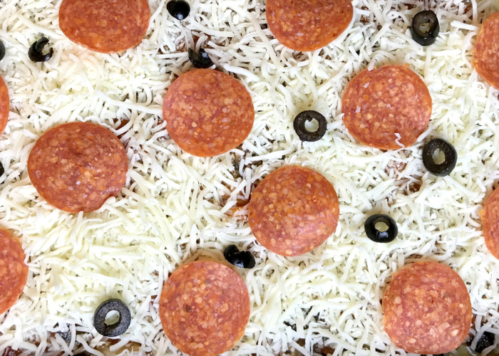 To make this a loaded supreme pizza, you will need Ground Beef, Pepperoni, Bell Peppers, Onions, Mushrooms, and Black Olives. You can always add or change any of the toppings to fit what sounds good to you! Different kinds of toppings could change the cooking time.